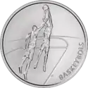 Аверс: назва держави, номінал і три зірки на тлі баскетбольного м'яча. | ||