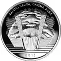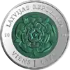 Аверс: чоловік в національному костюмі з дубовим вінком на тлі тексту пісні «Gaismas pils», номінал, логотип монетної програми «Європейська спадщина». Реверс: жінка в національному костюмі з букетом польових трав на тлі тексту пісні «Pūt, vējiņi», назва держави і рік випуску. Гурт: гладкий з написом на латис. DZIESMAI SODIEN LIELA DIENA. Відкарбована на Фінському монетному дворі. Номінал: 1 лат. Маса: 12,4 гр. Діаметр: 30 мм. Тираж: 30 000 шт. Дизайн: А. Прієдіте | ||