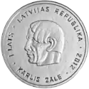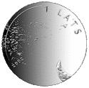 Гурт гладкий з двома написами на латис. LATVIJAS BANKA ♦ - «Банк Латвії ♦». Відкарбована на Фінському монетному дворі. Дизайн: Д. Пундурс | ||
