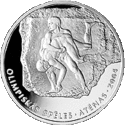 Реверс: три фігури давньогрецьких бігунів, напис на латис. 776. GADS PRIEKŠ KRISTUS - «776 рік до н. е.».