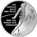 Аверс: герб і назва держави, рік випуску. Реверс: номінал, футболіст, назва заходу на латис. FIFA PASAULES KAUSS 2006 VĀCIJA і англ. 2006 FIFA WORLD CUP GERMANY ™. | ||