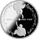 Аверс: герб і назва держави, рік випуску, номінал. Реверс: стилізоване зображення хокеїстів, два написи на латис. RĪGA 2006 - «Рига 2006», назва заходу на латис. Pasaules čempionāts hokejā і англ. Ice Hockey World Championship. | ||