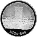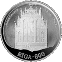 На реверсі кожної монети - назва серії на латис. RĪGA-800. Гурт гладкий з написом на латис. LATVIJAS REPUBLIKA ♦ LATVIJAS BANKA ♦ - «Латвійська республіка ♦ Банк Латвії ♦».