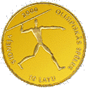 Аверс: герб і назва держави, рік випуску. Реверс: пара велосипедистів, номінал, напис на латис. SIDNEJA • 2000 • OLIMPISKĀS SPĒLES - «Сідней • 2000 • Олімпійські ігри». | ||