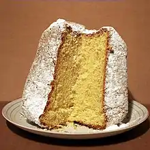 ![]() Нарізане шматочками пандоро, прикрашене цукровою пудрою | |
