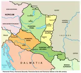 Адміністративна реформа Діоклетіана 296 року розділила Паннонію на чотири провінції Паннонія-I, Паннонія-II, Савія і Валерія прибережна з головними містами Карнунтум, Аквінкум, Брігеціон, Савія, Сіскія, Сірмія і Мурса. Водночас додатково розміщено Legio V Iovia та Legio VI Herculia.