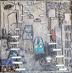 Будинок центрального автовокзалу в Києві — перша спільна робота архітектора Авраама Мілецького і творчого дуету Ади Рибачук і Володимира Мельниченка. Митці зробили дизайн, кольорову пластику, декоративно-монументальні роботи і ескізи панно для цієї будівлі.[1]