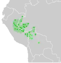 Проживають головним чином у вологих екваторіальних лісах районів річок Укаялі, Жаварі та Журуа в Бразилії, на південь від річки Мараньйон і на схід від річки Уайяґа в Перу.