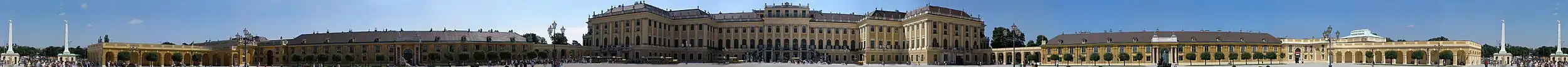 Панорамна світлина — внутрішній двір Шенбрунна. Зображення створено на основі 21 послідовного кадра