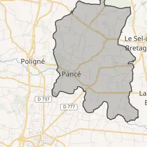 Муніципалітет розташований на відстані[2] близько 320 км на захід від Парижа, 26 км на південь від Ренна.