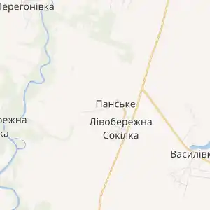 Село Панське знаходиться на лівому березі річки Ворскла, вище за течією на відстані 3 км розташоване село Соснівка, нижче за течією примикає село Лівобережна Сокілка, на протилежному березі — село Правобережна Сокілка. Річка в цьому місці звивиста, утворює лимани, стариці та заболочені озера.