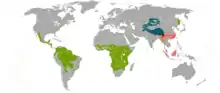 | Pantherinae: зелений — Panthera, морський — Panthera uncia, оранжевий — Neofelis | |