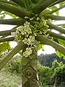 Папая — це дерево-гермафродит. Має чоловічі та жіночі квітки, запилювати їх не потрібно. За три місяці після цвітіння достигають плоди.