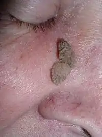 Папілома (від лат. papilla — сосочок) — пухлина з плоского або перехідного епітелію. Вона має кулясту форму, тверда або м'яка; з поверхні сосочкового вигляду (ніби цвітна капуста або ягода малини), розміром від просяного зерна до великої горошини; знаходиться на поверхні шкіри або слизової оболонки на широкій чи вузькій основі (ніжці). Пухлина побудована з клітин покривного епітелію, що розростається, кількість шарів його збільшена. В папіломі шкіри може спостерігатися ороговіння різної інтенсивності. Строма пухлини розвинена добре і росте разом з епітелієм. В папіломі зберігається полярність розташування клітин, комплексність, власна мембрана. Тканинний атипізм проявляється у вигляді нерівномірного розвитку епітелію та строми і надлишкового утворення кровоносних судин.