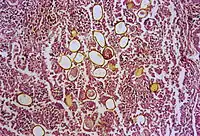 | Метод діагностики | клінічний аналіз крові, рентгенографія грудної кліткиd, КТ, оптичний мікроскоп, ІФА, ультразвукове дослідження і МРТ |