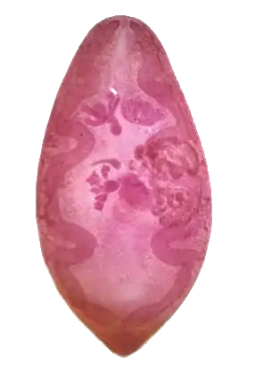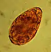 ![]() Доросла особина Paragonimus westermani (фарбування карміном) Доросла особина Paragonimus westermani (фарбування карміном) | |