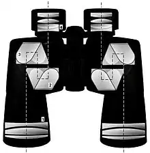 Призмовий бінокль є наймасовішим подібним інструментом. Завдяки штучному збільшені базису очей він дозволяє при огляді місцевості краще відчувати відстань. Найчастіше виготовляються біноклі зі збільшенням базису очей вдвічі, зрідка більше. При зміні відстані між точками спостереження в стільки ж разів змінюється паралакс. У поліпшених моделях біноклів є можливість коригувати цей параметр. [3]