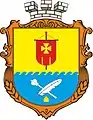 Щит понижено хвилеподібно перетятий на золоте та синє поля. В золотому полі червона хоругва, на якій золотий хрест із розширеними кінцями. У синьому полі перехрещені срібні перо та пірнач, під якими золотий каламар.