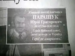 - У Тальному попрощалися з загиблим на Майдані Юрієм Паращуком. Архів оригіналу за 16 серпня 2016. Процитовано 24 лютого 2014.