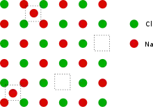 Схематичне зображення двох пар Френкеля в кристалічній ґратці типу NaCl