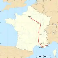 Переважно велогонка стартує у передмісті Парижа та фінішує на Англійській набережній у Ніцці. Місце старту щороку змінюється. Місце фінішу змінювалось лише раз — у 1951 велогонка закінчувалась на перевалі Коль-д'Азур поблизу Ніцци[1]. Але на фініш приїхало мало глядачів, тому наступного року фініш знову перенесли у місто.