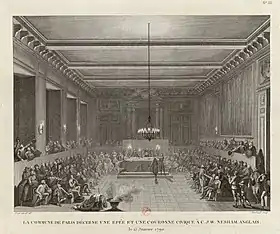 Місто було поділено на 48 секцій (1795), із встановленням для кожної з них особливого муніципалітету. Загальна рада комуни (Conseil général de la Commune) складалася з 24 представників паризького муніципалітету, і всі її постанови мали величезний вплив на події революції. Засідання ради були публічні; зала засідань мала особливі місця для публіки, які були завжди зайняті. Шометт, прокурор ради, щодня вносив туди масу пропозицій, які приймалися зборами, за досить рідкісними винятками. Більшість цих постанов приймали і всі інші громади республіки.