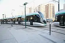 - На лінії Т1 — трамваї типу TFS (Tramway Français Standard). Довжина — 29 метрів, ширина — 2,3 метра, пасажиромісткість — 178 чоловік.