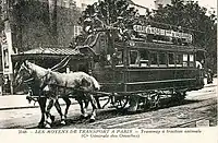 Перші трамваї з'явилися в Парижі ще в 1855 році, після того, як у 1853 році інженер і підприємець Альфонс Луба (він же був винахідником рейок з жолобом, без яких розвиток трамваю був би неможливим) подав міському уряду прохання на будівництво трамваю. Париж став одним із перших європейських міст, в якому з'явилася конка[1].