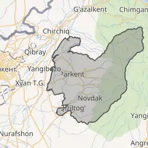 На півночі, сході та півдні межує з Бостанліком, Ахангароном, на заході з Юкорі Чирчиком та на південному заході з Ортою Чирчиком. Площа 1,08 тис. км². Населення 115 тис. осіб (2003).