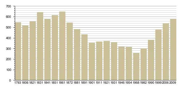 Динаміка населення (base Cassini de l'EHESS pour les nombres retenus jusqu'en 1962[4], base Insee à partir de 1968 (population sans doubles comptes puis population municipale à partir de 2006)[5] · [6] ):