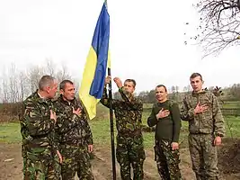 Учасник АТО піднімає прапор України