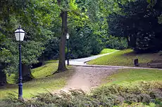 У XIX столітті ландшафти було змінено у стилі англійського пейзажного парку, також було додано споруди у стилі романтичного неокласицизму з елементами історизму. Під час проведення робіт було вирубано частину лісу, викопано штучні озера, прокладено шляхи та побудовано кілька мостів. Не зважаючи на це, до цього часу на великій площі парку збереглися природні біотопи.