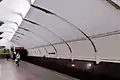 Платформа є величезним склепінням, розокремлено падугою з кроком в 6 метрів. У центрі знаходиться величезна ніша з ритмічно розташованими світильниками. Основні кольори оформлення - білий, сірий і коричневий. Бічні ніші прикрашені латунними елементами. Склепіння станції білого кольору, прикрашено люстрами.