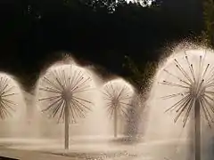 У 1970-х роках на місці мальовничого газону перед входом до парку з вул. Вітовського побудовано фонтан. Основною причиною заміни мальовничого газону на «кульбабовий» фонтан був у тому, що у сусідній будівлі регіонального управління КДБ встановили обладнання, що потребувало охолодження. З набуттям незалежності КДБ замінило СБУ і сучасне обладнання вже не потребувало охолодження, а фонтан залишився. Фонтан був облицьований гранітом, який потрохи був розтягнутий львів'янами на власні потреби. Після того бортики фонтану були пофарбовані білою фарбою.[1]