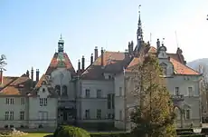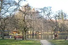 У парку розташований мисливський палац графів Шенборнів, побудований у готичному стилі. У центрі парку міститься декоративний ставок, що живиться гірськими потоками, вкритий листям і білим лататтям. Його контури нагадують абрис Австро-Угорської імперії[2].