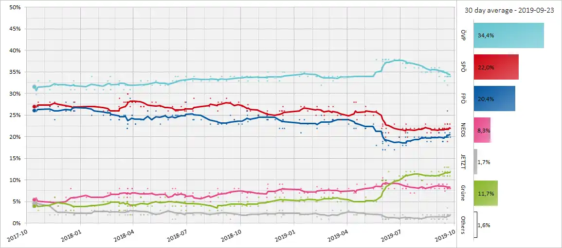 | NEOS — Нова Австрія і Ліберальний форум | 387,124 | 8.10 | 15 | +5 | ||