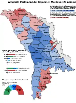 | Ліберально-демократична партія Молдови | 505,638 | 29.38 | +12.81 | 32 | ||