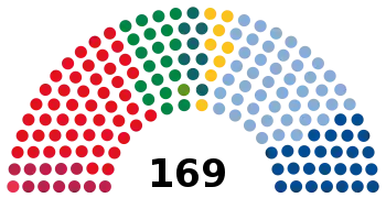 | Попередні вибори | 55 місць, 30,8% | 48 місць, 26,8 % |