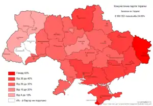 | Комуністична партія України | 24,65 % | 84 / 225 |