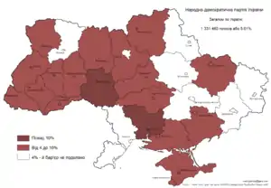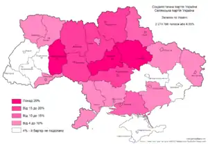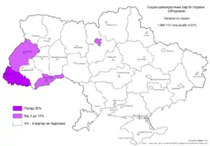 | Соціал-демократична партія України (об'єднана) | 4,01 % | 14 / 225 |