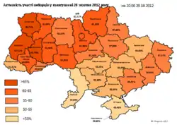 - ЦВК каже, що вибори відбулися: явка — майже 57 % Архівовано 1 листопада 2012 у Wayback Machine. на УНІАН