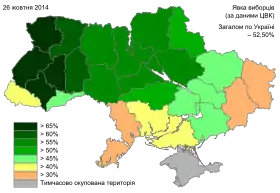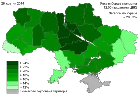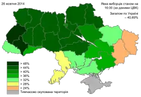 - Хід голосування по регіонах України. Архів оригіналу за 28 жовтня 2014. Процитовано 26 жовтня 2014.