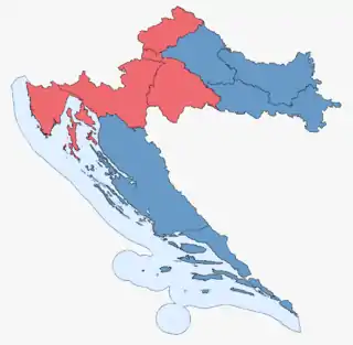 ![]() Результати виборів у кожному з десятьох виборчих округів Хорватії: | ||||