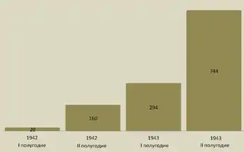 Загалом 1942 року було здійснено 168 літако-вильотів до білоруських партизан, при цьому в тил до німців було доставлено 200 спеціалістів з ведення партизанської війни, 118 тонн бойових вантажів і вивезено 180 поранених та хворих[35].