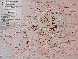 Радянський партизанський рух на території Білорусі мав, згідно з радянськими джерелами, загальнонародний характер. До кінця 1941 року в лавах партизан бились 12 000 чоловік у 230 загонах[1]. Чисельність білоруських партизанів до завершення війни перевищувала 374 тис. чоловік. Вони були об'єднані у 1255 загонів, з яких 997 входили до складу 213 бригад і полків, а 258 загонів діяли самостійно[2].