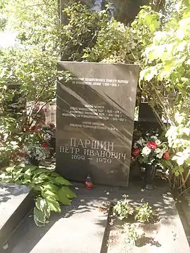 Помер 11 жовтня 1970 року в Москві. Похований на Новодівочому цвинтарі Москви.
