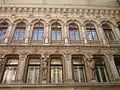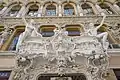 Пасаж будівлі оздобленням не поступається головному фасаду й оздоблений численними скульптурами.