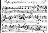 Пасакалія (фр. passacaille, італ. passacaglia, ісп. pasacalle, від pasar — проходити і calle — вулиця[1]) — спочатку іспанська пісня, а з кінця XVI століття — танець святкового або маршеподібного характеру, який виконувався на вулицях під час проводів гостей по закінченні свята. З другої половини XVII століття — як велика і розвинена музична форма переважно поліфонічного складу. Стала відомою завдяки творчості німецьких композиторів-органістів Йоганна Пахельбеля, Дітріха Букстегуде, Йоганна Себастьяна Баха, Георга Генделя.