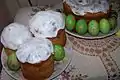 ![]() Традиційні українські Паски з «трипільською» писанкою та вербою | |