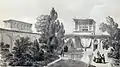 Ежен Фланден. Палац Каср і Кахар біля Теграна, внутнішній дворик з басейном, друк 1840 р.
